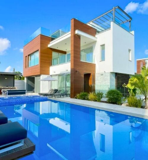 This luxurious six-bedroom villa in Ayia Napa is a masterpiece of modern elegance and comf ...
