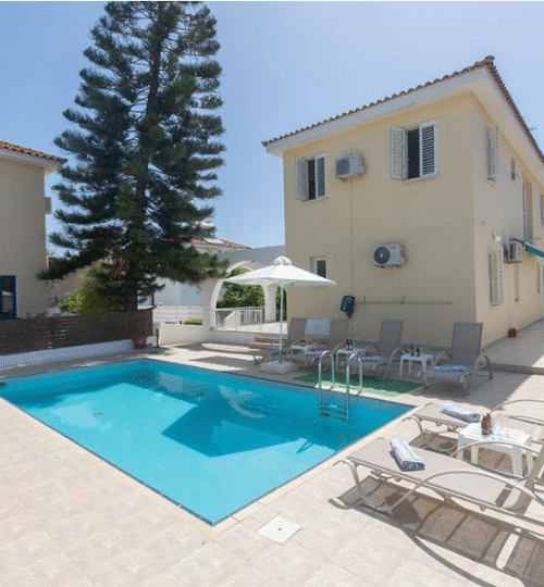This beautiful three-bedroom villa is located in a quiet residential area in the heart of Kapparis — just 600 meters from the beach and only a one-minute walk t ...
