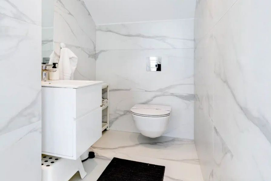 Upon entering the villa, the ground floor welcomes you with a spacious open-plan living area, elegantly designed to offer both comfort and functionality. The fully equipped kitchen, complete with a stylish kitchen island, serves as the heart of the home, providing additional workspace and a casual dining option. The living and dining areas seamlessly extend to the outdoor space, where a private swimming pool and a patio create a perfect setting for relaxation and entertainment. A guest toilet is conveniently located on this level for added comfort.