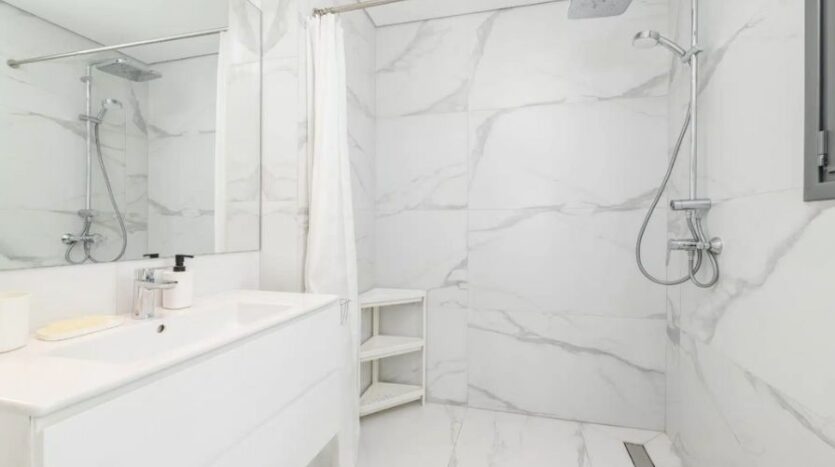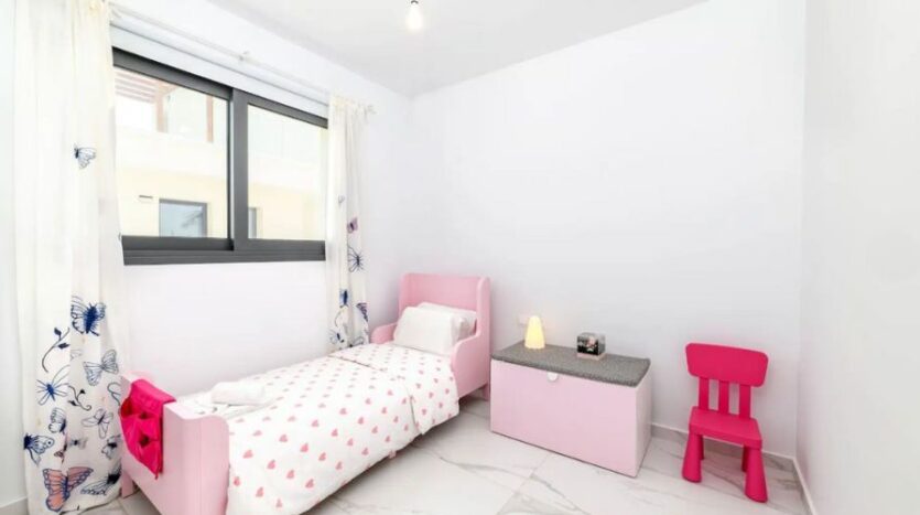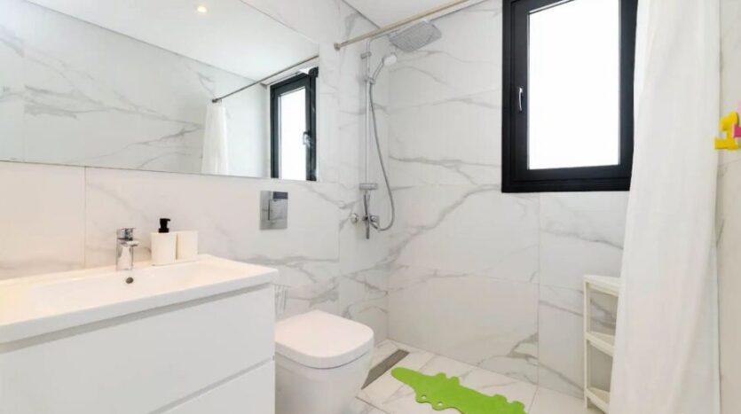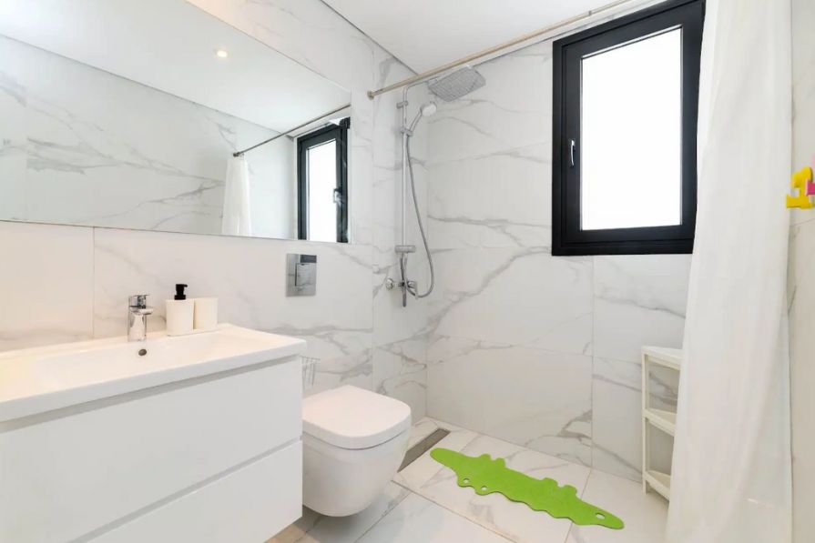 Ascending to the first floor, you will find three well-appointed bedrooms, each designed with attention to detail. All bedrooms benefit from access to a private balcony, that offers a charming outdoor space to enjoy the fresh coastal air. The master bedroom features a private en-suite bathroom, ensuring an extra touch of luxury and privacy. The remaining bedrooms share a modern and stylish family bathroom, completing the layout of this floor.
