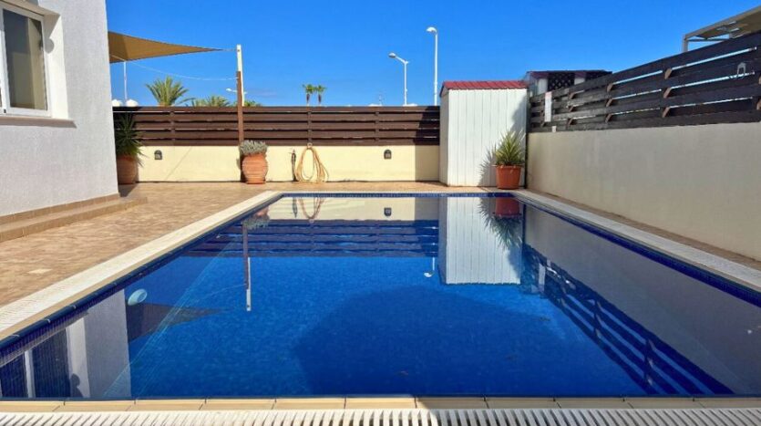 This attractive three-bedroom detached villa in Protaras offers a rare opportunity to own a fully furnished home with title deeds in one of Cyprus’s most sought-after coastal locations. Situated in a secure gated complex and enjoying serene sea views, the property combines comfort, style and strong rental appeal, making it ideal for both personal use and investment purposes.