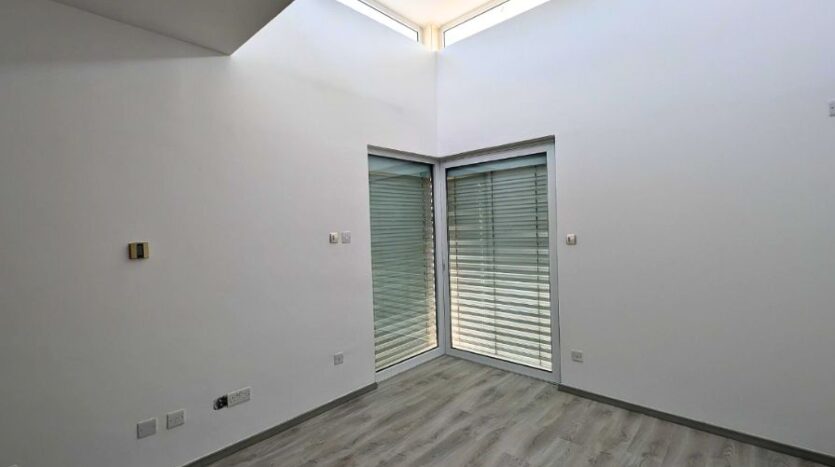 Upstairs, the villa features three generously sized bedrooms, each with fitted wardrobes and access to a private balcony- perfect for enjoying the serene surroundings. The master bedroom includes an en-suite shower for added convenience, while a family bathroom serves the remaining bedrooms.