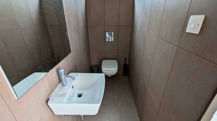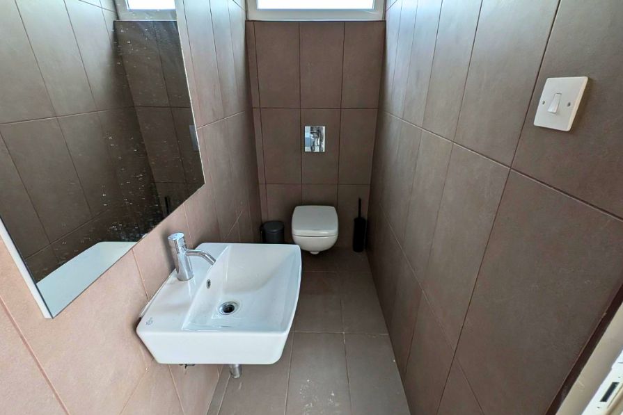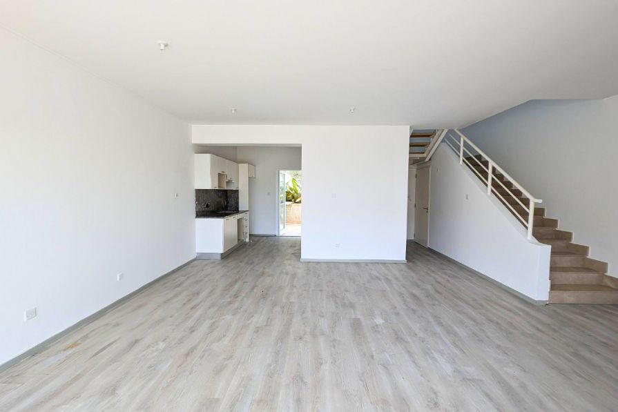 Upon entering, you are welcomed into a bright and airy open-plan living and dining area, allowing for a seamless flow of natural light. The unfurnished interior provides the perfect blank canvas to design and style the space to your taste. The kitchen is well-sized, offering ample storage and workspace. A guest toilet is also available on this floor.