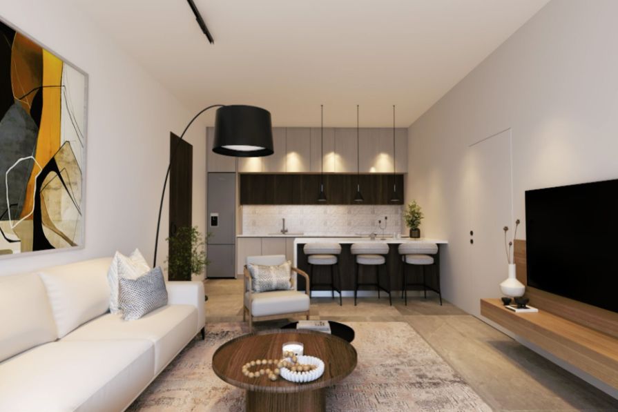 Brand-new two bedroom second-floor apartment perfectly situated in the heart of popular Deryneia. Just a 10-minute stroll brings you to the village centre which offers a great selection of bakeries, tavernas, bars, shops and more to explore. Paralimni is just a short drive away which offers even more establishments to choose from, and Kapparis which has some fantastic beaches, bars and restaurants is just a 10-minute drive away.