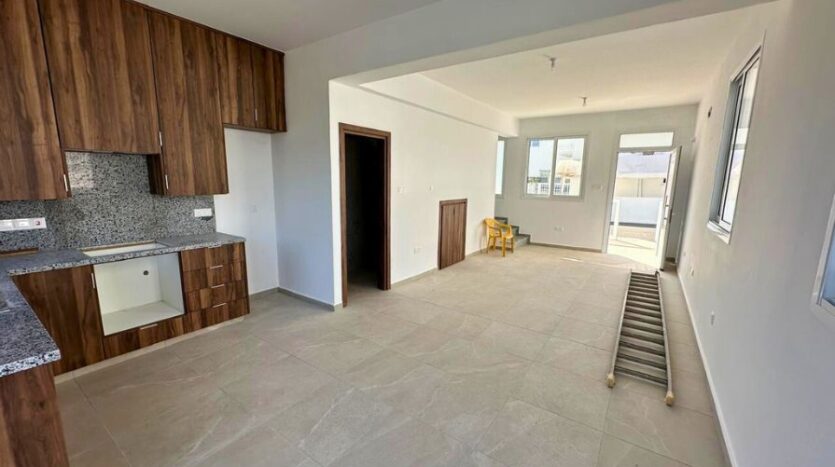 Presenting a newly built, modern two-bedroom semi-detached townhouse located in the sought-after coastal area of Kapparis. This unfurnished home offers a bright and functional open-plan layout on the ground floor, seamlessly connecting the living, dining and kitchen areas—perfect for both relaxed living and entertaining.