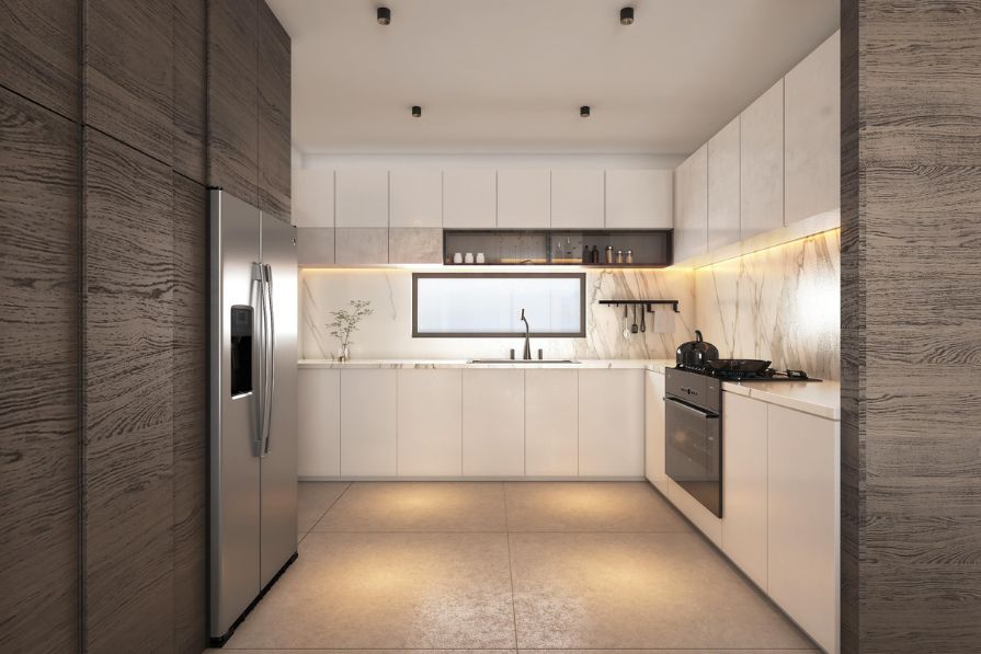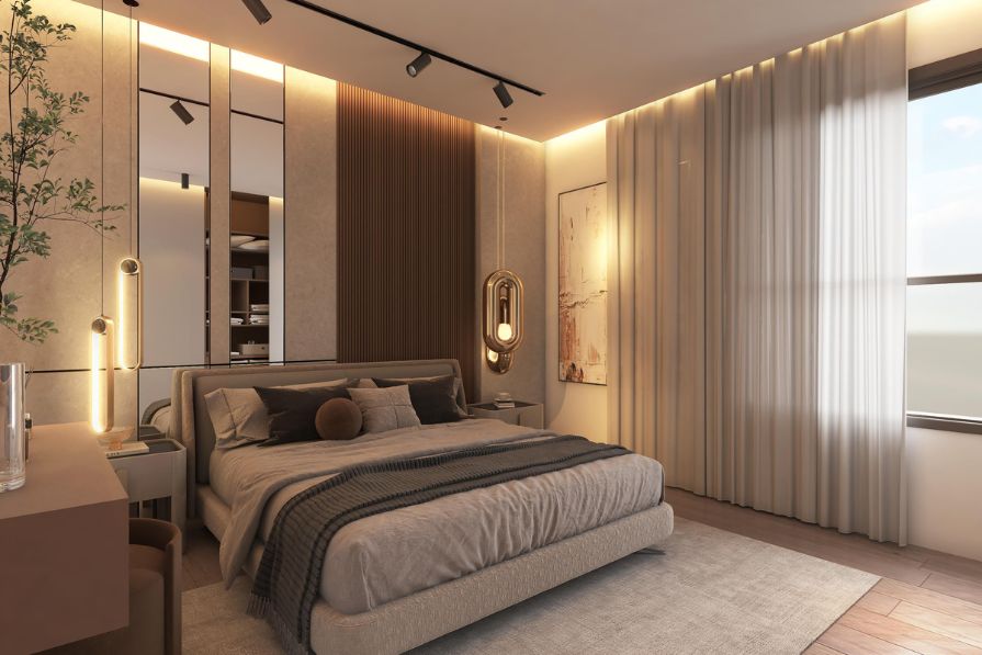 The ground floor is designed with a modern, open-plan layout, combining a spacious lounge and dining area that leads out to the private garden through large glass sliding doors. The contemporary kitchen is equipped with sleek, modern units, granite countertops, and ample storage space, perfect for anyone who enjoys cooking. The villa features three spacious bedrooms, each filled with natural light. Two of the bedrooms come with ensuite bathrooms, while the third is served by a family bathroom. There is also a guest WC on the ground floor for added convenience.