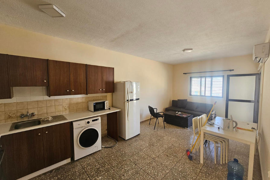 The apartment features an open-plan layout combining the kitchen, living, and dining areas — perfect for relaxed modern living. The kitchen is fully equipped with all essential appliances, while the living area opens onto a private veranda, providing an ideal spot for enjoying morning coffee or evening sunsets.