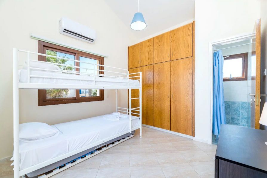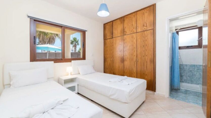 This exquisite three-bedroom coastal villa is nestled in the serene beauty of Ayia Thekla. A few steps will take you to the majectic stunning beaches of the area and a few minutes’ drive will take you to the vibrant center of Ayia Napa that consists with a plethora of local shops, gourmet restaurants and lively bars. Set on a vast private plot, this dreamy retreat offers a perfect sanctuary where luxury meets nature, just moments away from the crystal-clear waters of the Mediterranean.