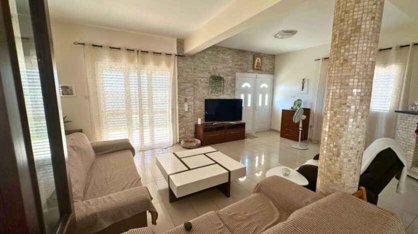 The villa features uncovered parking for multiple vehicles and offers ample space on the grounds for the addition of a private swimming pool, enhancing the outdoor lifestyle that the Cypriot climate so perfectly supports.