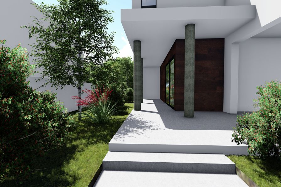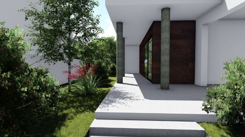 The villa also includes a private garden, perfect for relaxation or entertaining, and covered parking for convenience.