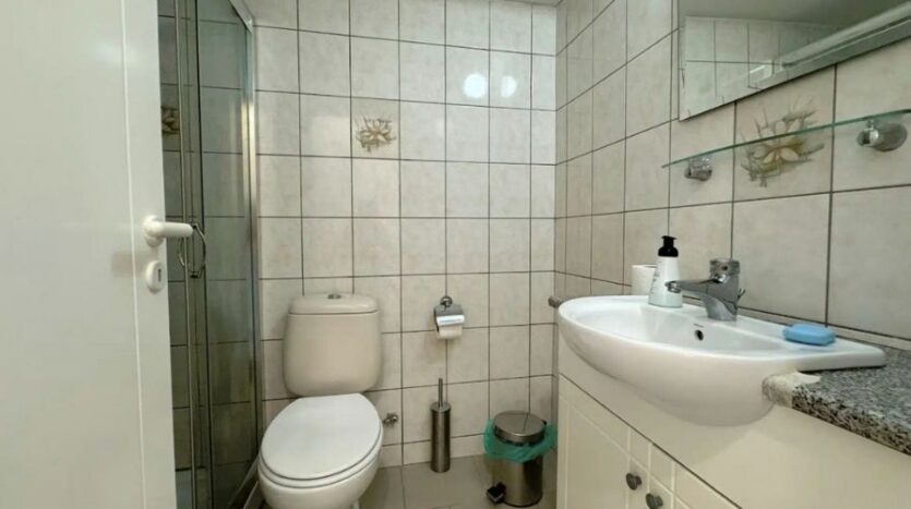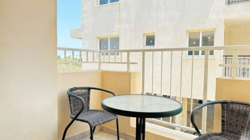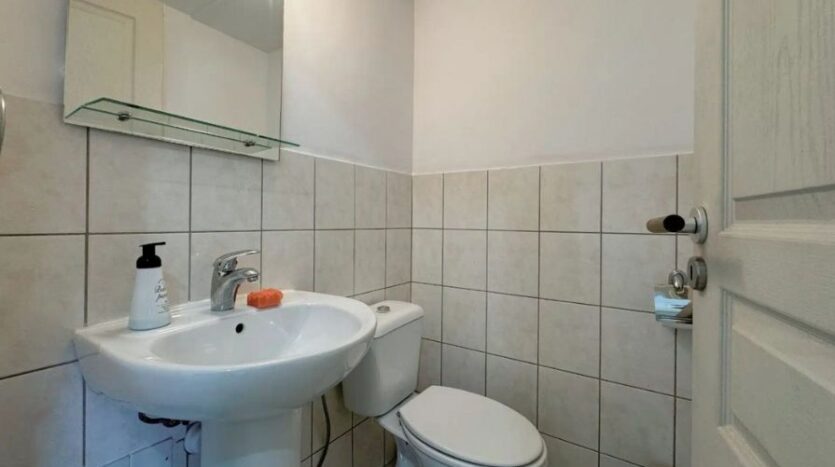 The apartment comprises an open-plan living and dining area with a fully equipped kitchen that is designed for everyday convenience, featuring essential appliances and ample storage space. There is an additional guest toilet and a private balcony, ensuring practicality for residents and visitors alike.