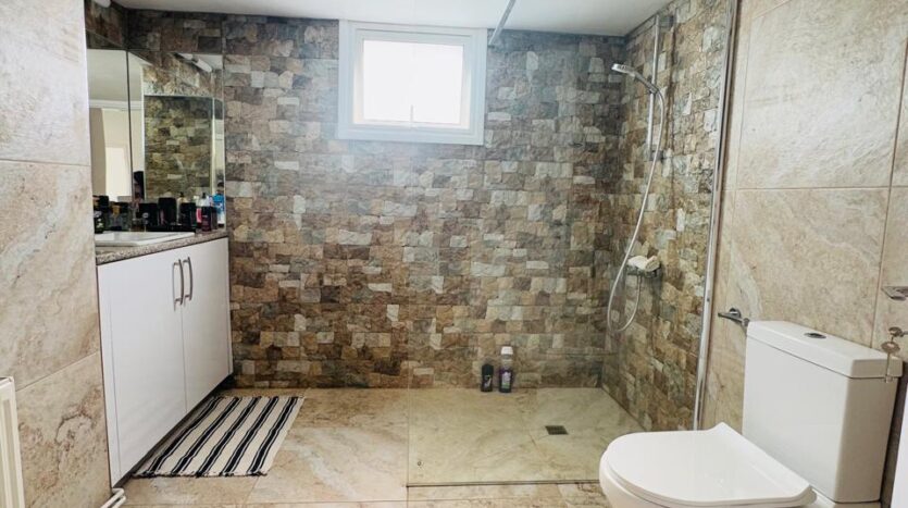 Continuing through the home, you will find two spacious and bright bedrooms. One of them boasts a luxurious en suite bathroom, while there is also a beautifully designed shared bathroom for added convenience.