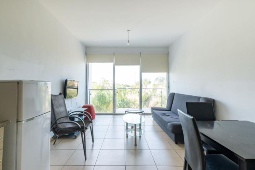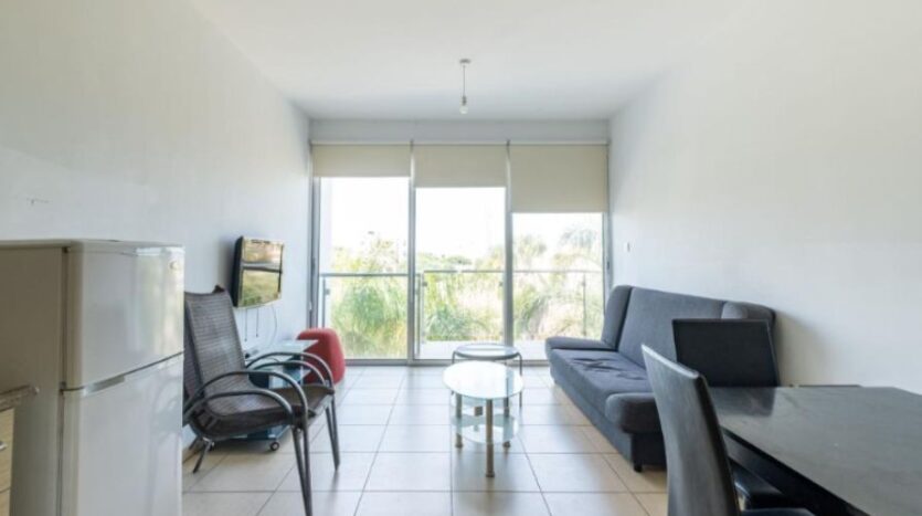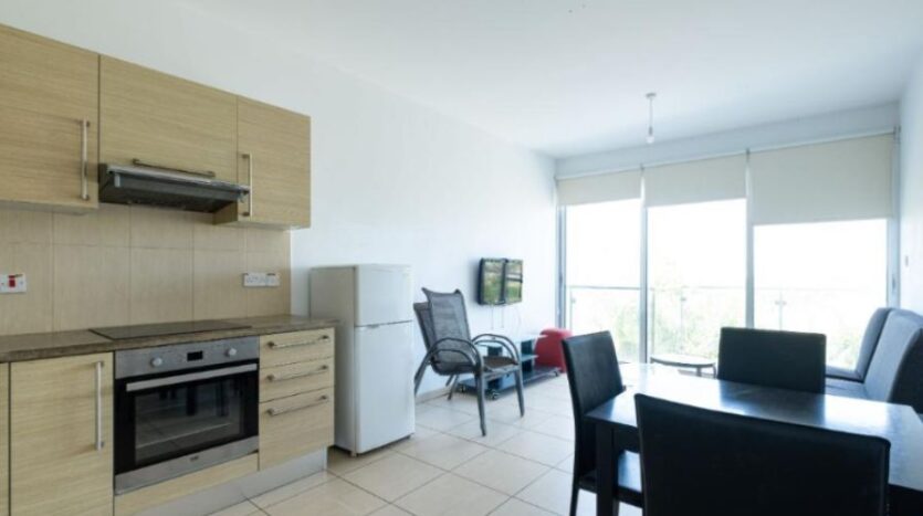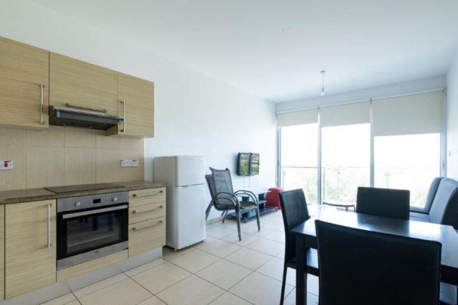 The apartment has an open plan design with a fully fitted, modern kitchen, dining area and living room which leads out to the private balcony which enjoys partial sea views, creating a relaxing place to unwind and enjoy the amazing sunrises Cyprus has to offer. There is one double bedroom with fitted wardrobes and a family bathroom with walk-in shower. There is also a small utility cupboard maximising space in the kitchen.