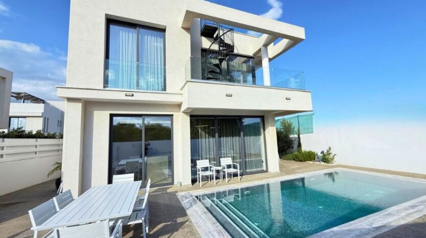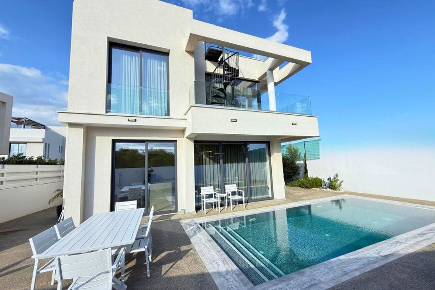This elegant three-bedroom detached villa in Pernera combines contemporary design, luxury features and an enviable location within a secure gated complex just a short walk from the beach. Positioned on a corner plot, the villa offers enhanced privacy and space, with thoughtful architectural detailing and upscale finishes throughout. Perfect as a permanent residence, holiday home, or investment property, this villa delivers exceptional comfort and high rental appeal.