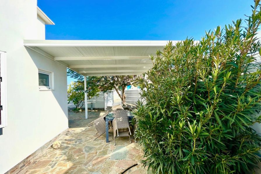 A dedicated storage area adds to the practicality of the home, while outside, a stylish pergola covers a welcoming seating area, perfect for dining or relaxing in the shade. A built-in BBQ area enhances the outdoor lifestyle, making it ideal for entertaining and enjoying the Mediterranean climate.
