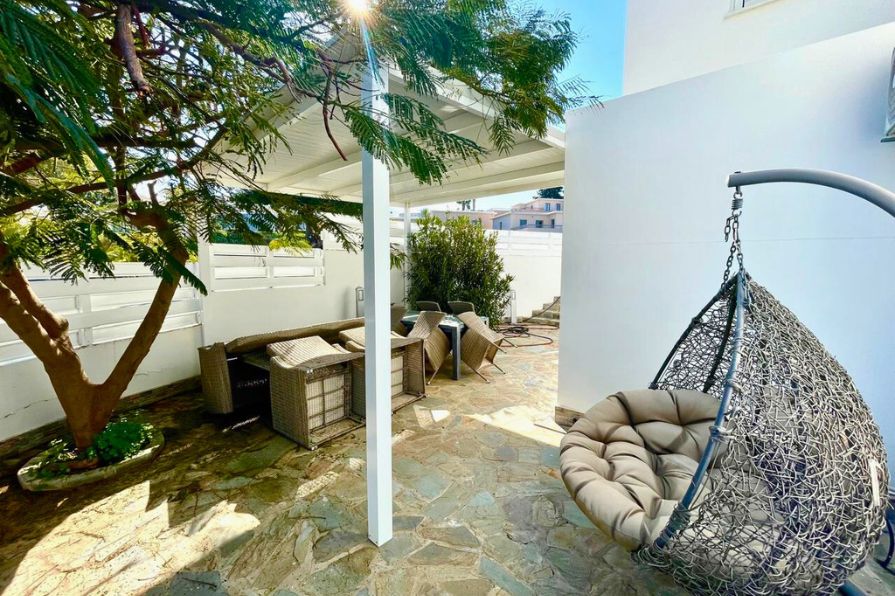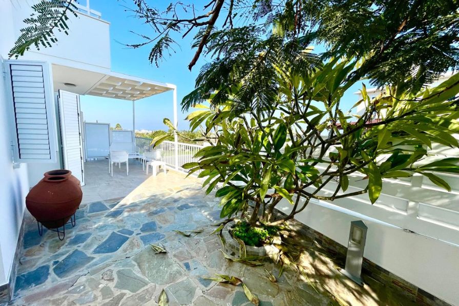 Situated in the peaceful Profitis Elias area of Protaras, this exquisite two-bedroom ground floor apartment offers a rare combination of privacy, outdoor space and sea views. Occupying a desirable corner plot, the property boasts a beautifully maintained private mature garden that surrounds the home, creating a serene and inviting atmosphere.