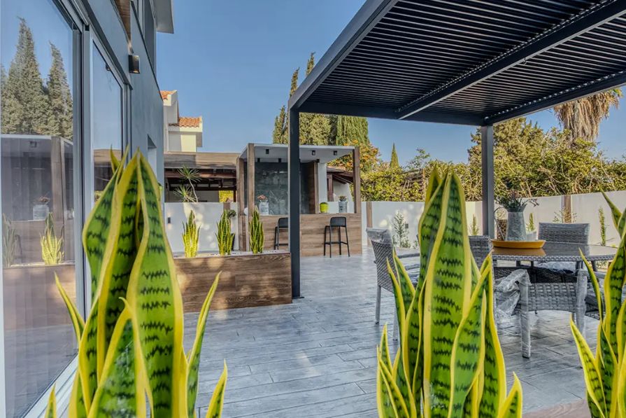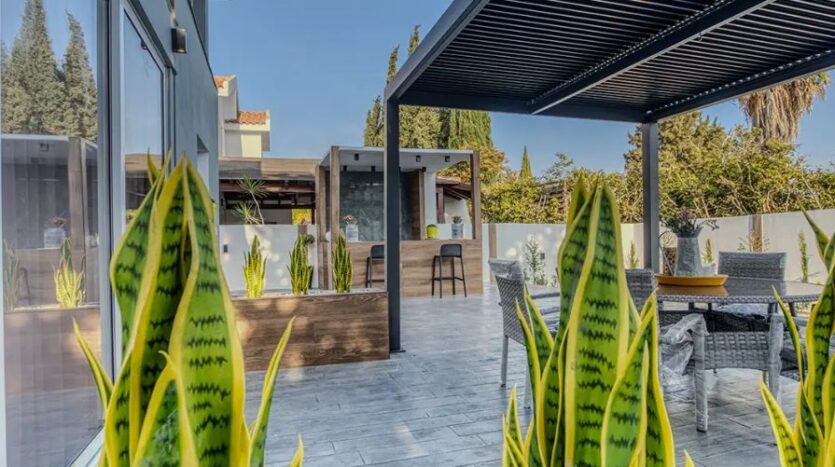 The beautifully designed landscaping of the outdoor space makes this an unbeatable place both to relax or host. The well-equipped yard offers a BBQ and bar setup, perfect for get-togethers, or simple just unwinding in the peace and quiet of your private garden.