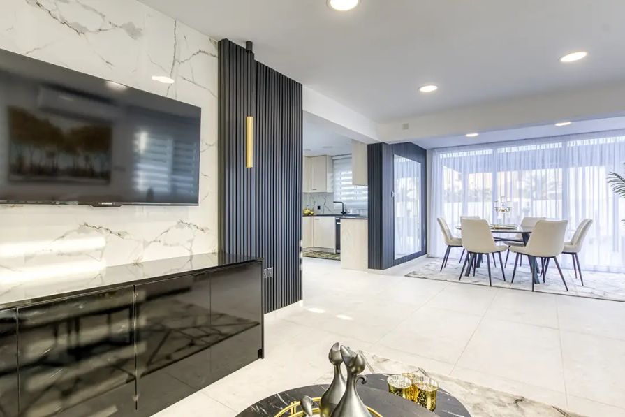 Recently renovated to a high standard, this property combines style and comfort ensuring a luxurious lifestyle both internally and externally. The spacious open plan living and dining area are elegantly decorated, with the dining area looking out to the private garden. The kitchen is conveniently off-set and comes fully fitted with all units, granite countertops and appliances. The ground floor also boasts a generously sized guest WC for added convenience.