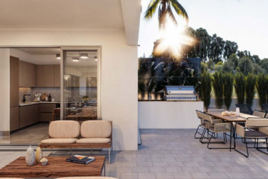 Step into a refined coastal retreat where contemporary elegance meets laid-back Mediterranean living in the serene enclave of Ayia Thekla.
