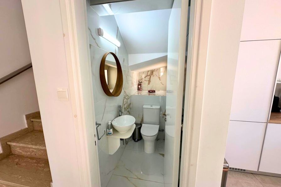 Step inside to discover spacious open-plan living areas filled with natural light, tastefully furnished and fully equipped for a relaxed lifestyle. The modern kitchen flows seamlessly into the dining and lounge spaces, creating an inviting atmosphere for entertaining or unwinding. The ground floor includes a convenient guest WC.