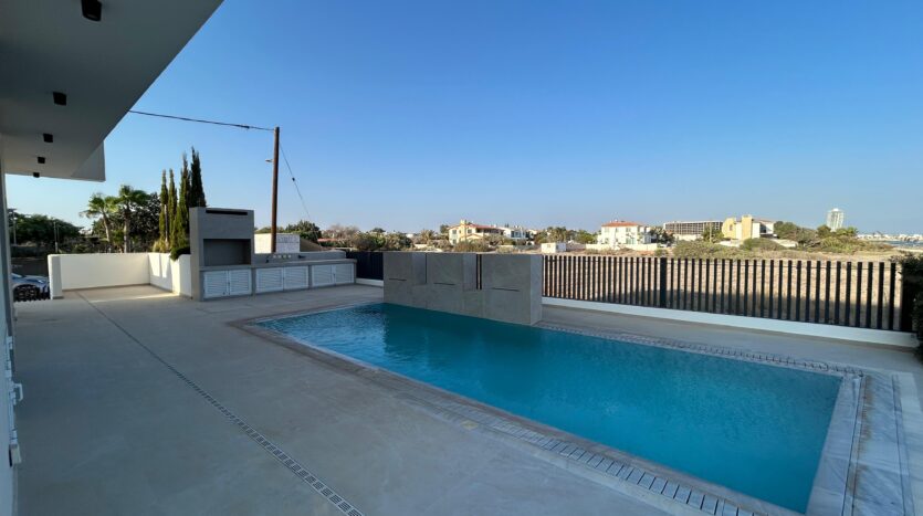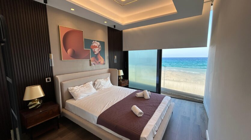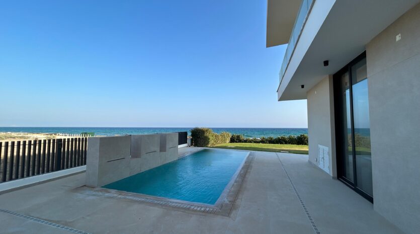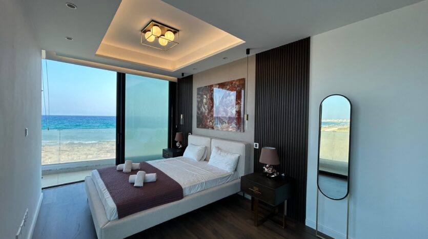 This exceptional seafront four-bedroom villa is located in the prestigious area of Ayia Thekla and forms part of an exclusive development consisting of only two luxury beachfront villas, built to the highest standards. The property enjoys unobstructed sea views and direct access to beautiful sandy beaches, offering a truly unique coastal lifestyle. A ten-minute walk leads to local amenities, while the blue-flag beaches of the area and the Ayia Napa Marina are within walking distance. Ayia Napa and its vibrant surroundings are just a short drive away.