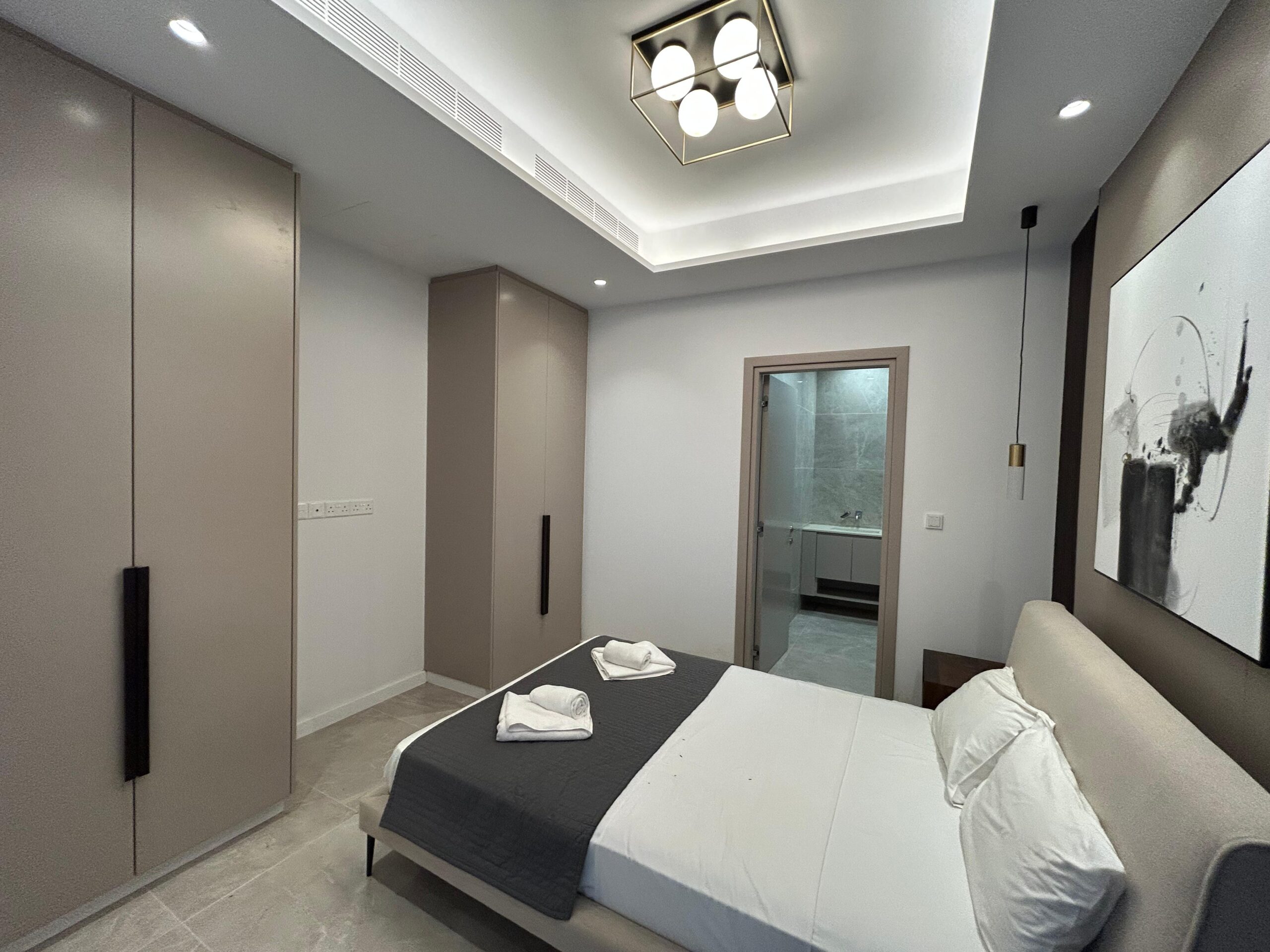 Outdoors, the villa boasts a private overflow swimming pool, a landscaped garden with green lawn areas, and a built-in outdoor kitchen, creating the perfect setting for outdoor living and entertaining. The property is offered fully furnished and fully equipped with all appliances.