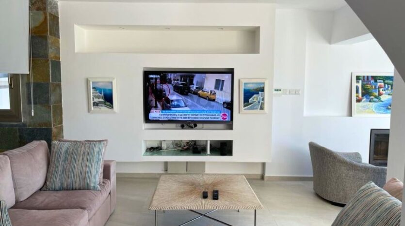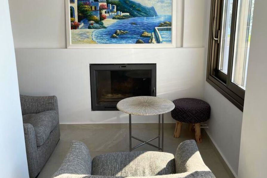 The villa is bright and spacious with luxurious and modern fixtures and fittings throughout and was recently refurbished. The ground floor is open plan with a combined kitchen and dining area. The kitchen comes fully fitted with appliances and boasts granite countertops and plenty of storage space. The living area is accessed through feature archways and is tastefully designed creating an ambient spot to relax and enjoy respite from the sun. There is also a second living space to relax, with a feature fireplace – perfect for cooler winter evenings.