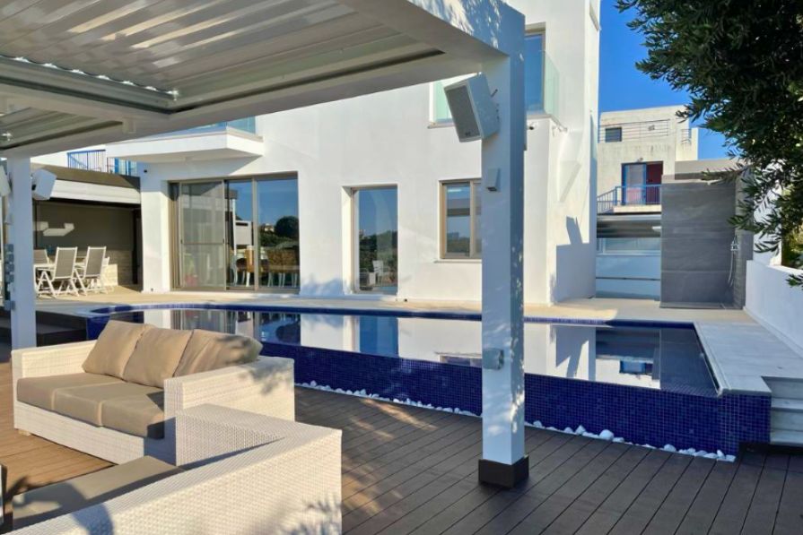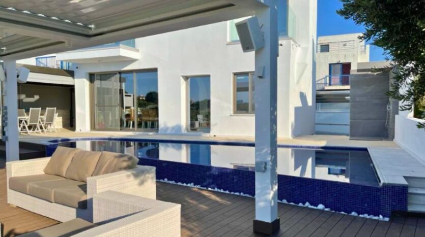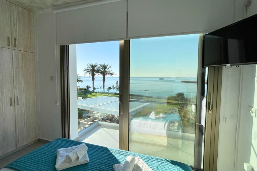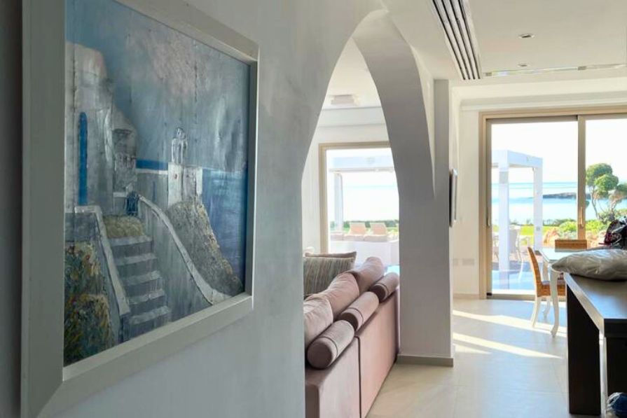 Stunning five-bedroom seafront villa with a private swimming pool and sea views, situated on a large plot in tranquil Ayia Triada. The famous Serena Bay is just a two-minute walk and Paralimni Marina is just a five-minutes away.