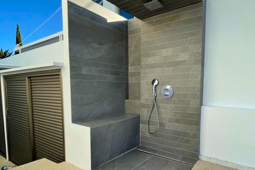 The bedrooms on the first floor are all generously sized and have sleek, integrated wardrobes. Two of the bedrooms benefit from private verandas with unobstructed sea views – a stunning place to enjoy a peaceful morning coffee.  The property also enjoys five bathrooms ensuring that everyone can enjoy privacy and convenience.