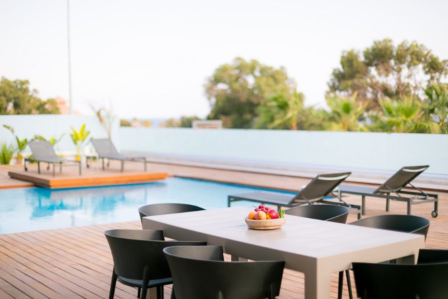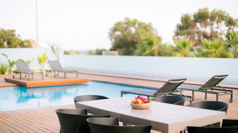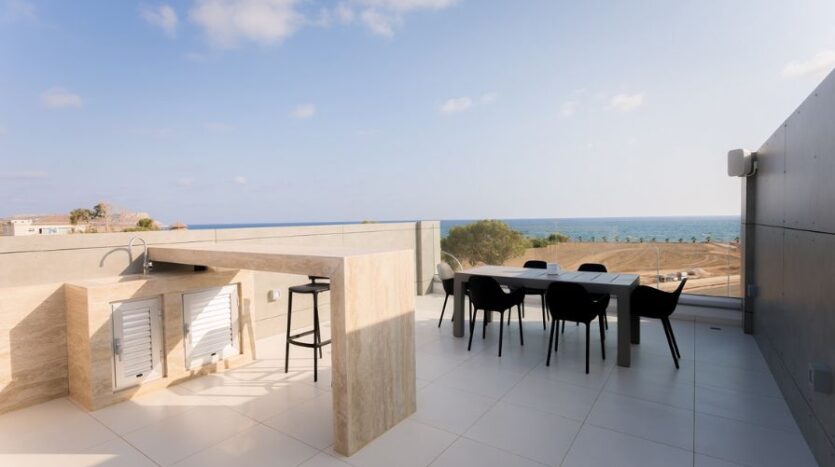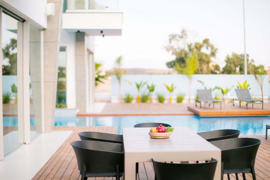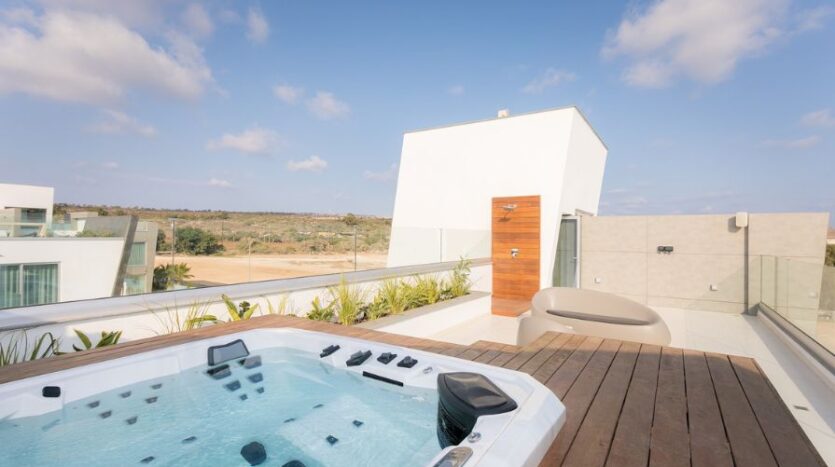 The exterior space is beautifully designed for Cyprus living and offers a private, landscaped garden, decked area, private swimming pool and a BBQ area, creating a wonderful environment for relaxing and entertaining. The roof garden is an additional space to wow guests with a hot tub, guest WC and plenty of space for sunbathing, boasting unbeatable sea views of Cape Greco.