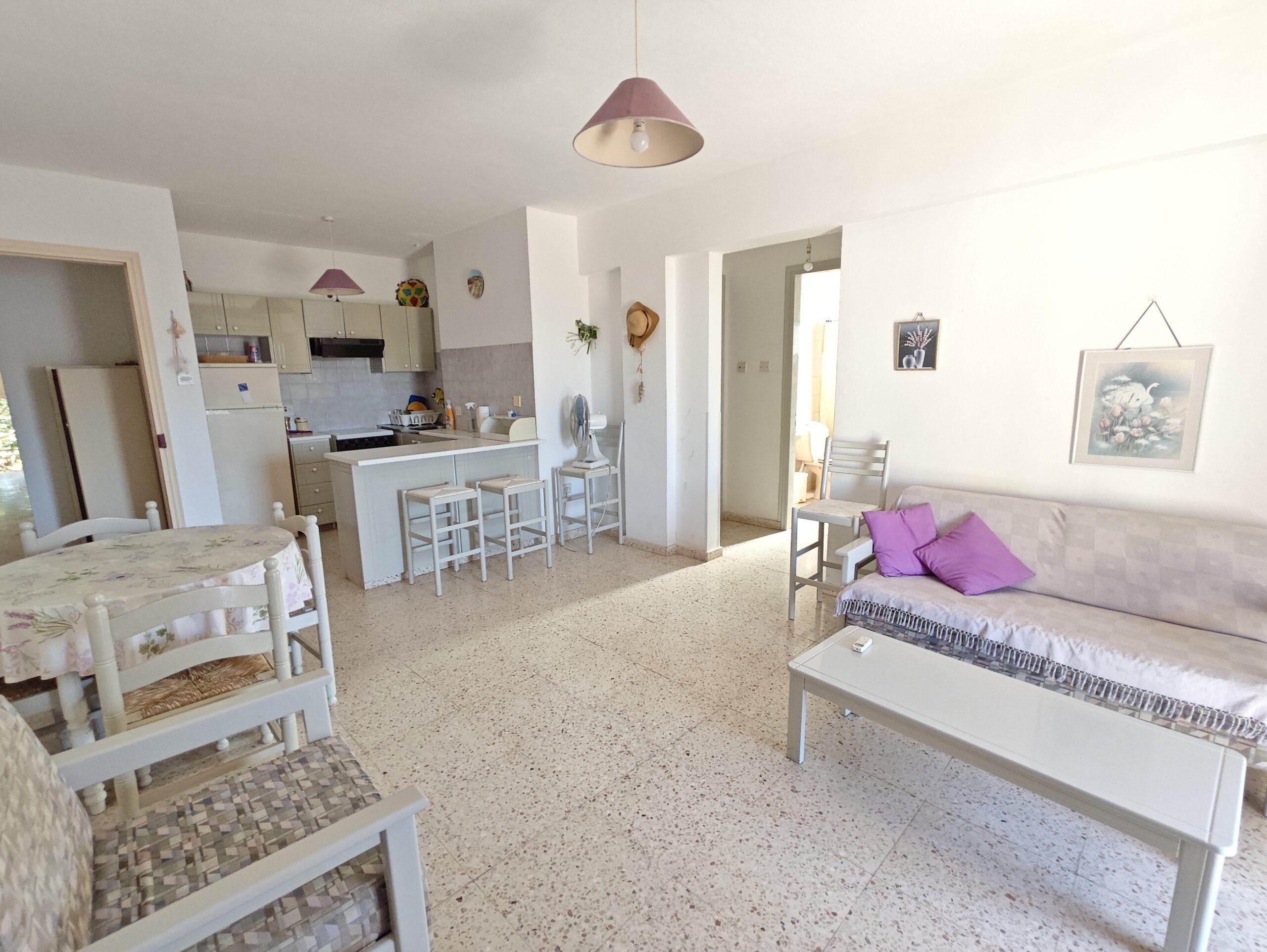 This two-bedroom, first floor apartment is situated in the popular all-year round Kapparis just a few minute’s walk to all year around open shops, bars, restaurants, supermarkets and a few minutes walk to the idyllic sandy beaches. Paralimni main town is less than 5 minutes drive, giving you easy access to everything you need.