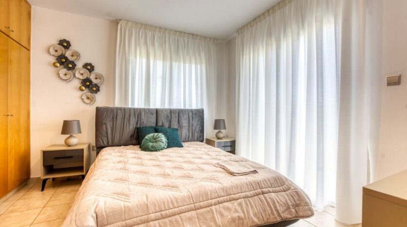 This charming 2-bedroom semi-detached villa, complete with title deeds, is located in the heart of Protaras. Just a 15-minute stroll or a 2-minute drive will take you to the famous Protaras Strip, known for its vibrant array of shops, bars, restaurants, and entertainment. The nearest beach is also just a 15-minute walk or a 3-minute drive away, with several other beautiful beaches close by.