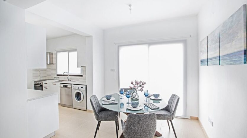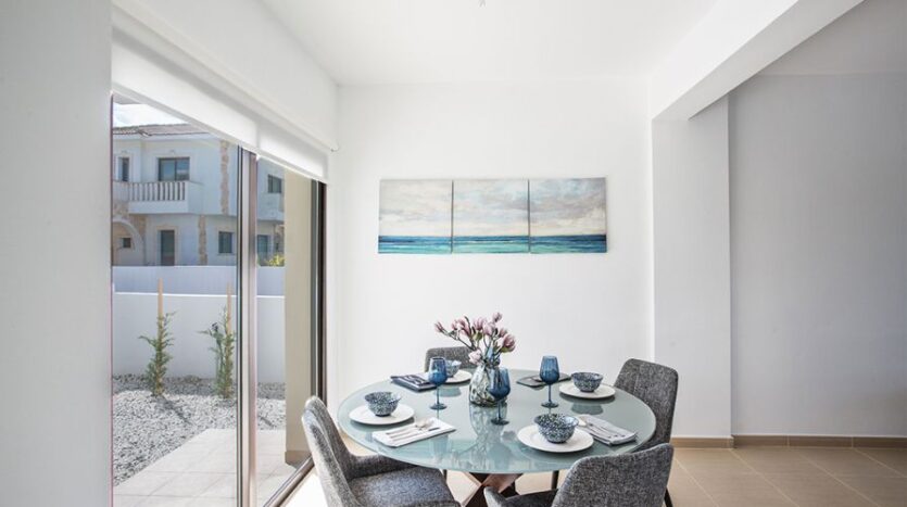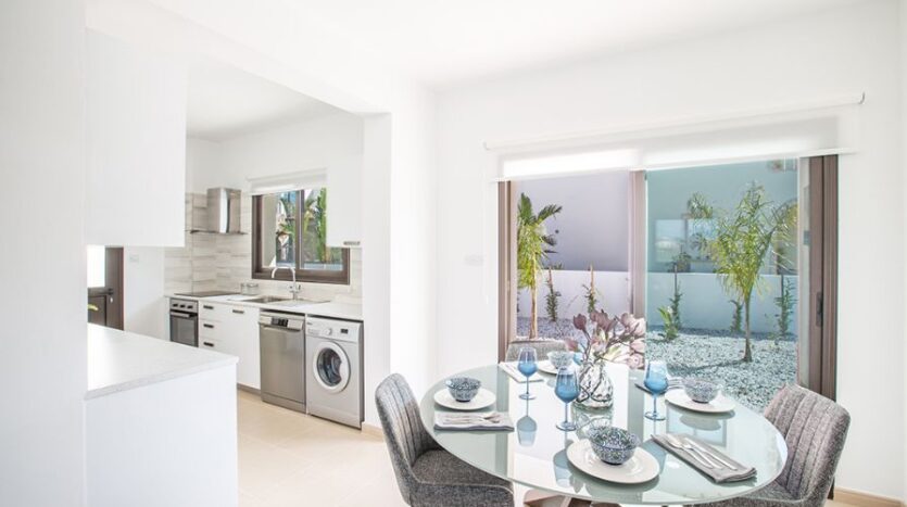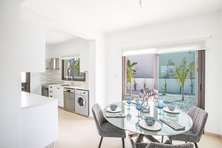 The outdoor space is a lovely setting to kick back and relax on the private patio, enjoying a quiet morning coffee, or perhaps some al fresco dining under the stars. There is also a lovely communal pool to take advantage of during the many sunny days Cyprus offers.