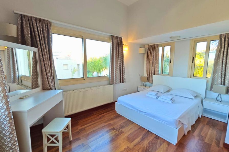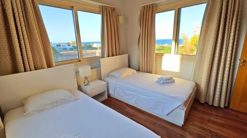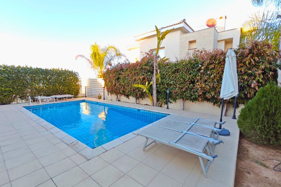The outdoor space includes a generous garden for outdoor dining and a private pool that is exceptional for sunbathing and swimming. This villa provides a unique opportunity to own a family home or a holiday retreat in one of Cyprus’s prime coastal locations. It combines comfort, luxury and natural beauty, making it a wonderful choice for anyone seeking a serene yet accessible Mediterranean lifestyle.