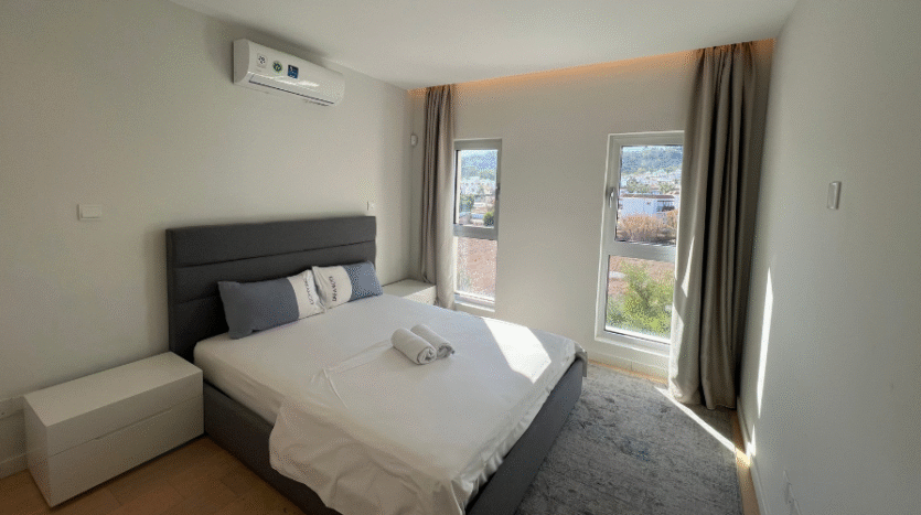 The apartment comes fully furnished, complete with air conditioning, a fully fitted kitchen equipped with modern appliances, and elegant hidden lighting throughout — offering a stylish and comfortable living environment.