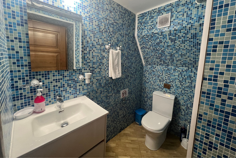 The property also benefits from a 62m² basement, which features two well-sized bedrooms with fitted wardrobes that share access to a main bathroom — ideal for guests or extended family.