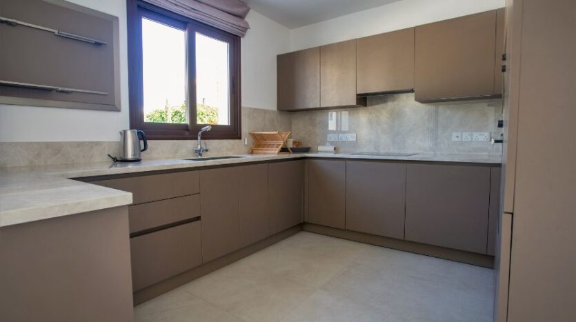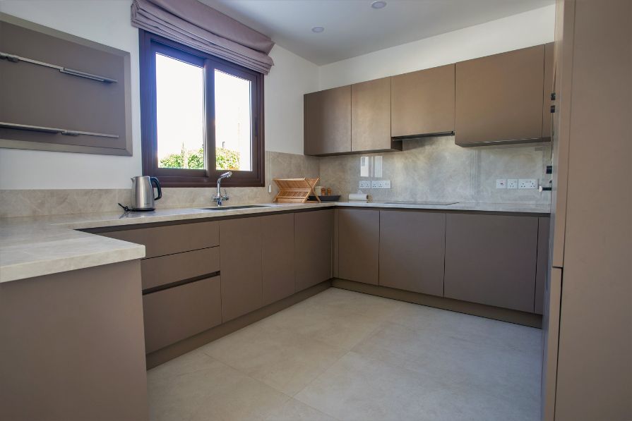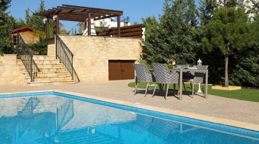 Outside, the villa’s landscaped garden provides the ideal setting for both relaxation and entertaining. A covered seating area offers a shaded haven for quiet afternoons or evening gatherings, while a built-in barbecue area invites al fresco dining. The private swimming pool, positioned to capture uninterrupted sea views, becomes the centrepiece of the garden, offering a tranquil escape against the backdrop of Cyprus’s stunning coastline. The property also offers the convenience of secure private parking.