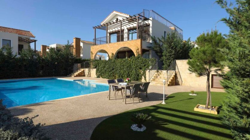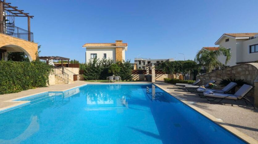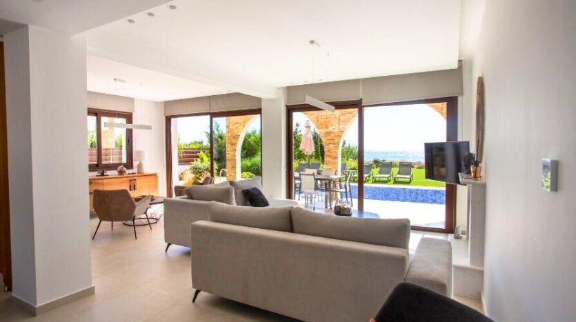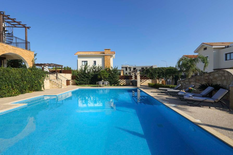 In a setting of rare natural beauty, just steps from the glittering turquoise waters of the Mediterranean, this exceptional five-bedroom detached villa offers a lifestyle of luxury, privacy and elegance. Set within an exclusive development inspired by classical Greek architecture, the property blends timeless design with the comforts of modern living. Located in the tranquil and sought-after area of Ayia Thekla, the villa enjoys proximity to all essential amenities, while offering seclusion and serenity. From the doorstep, you are moments away from renowned Blue Flag beaches and just a short drive from the vibrant town centre of Ayia Napa. Further along the coastline, Cape Greko, Protaras and a series of breathtaking coves and walking trails beckon for exploration.