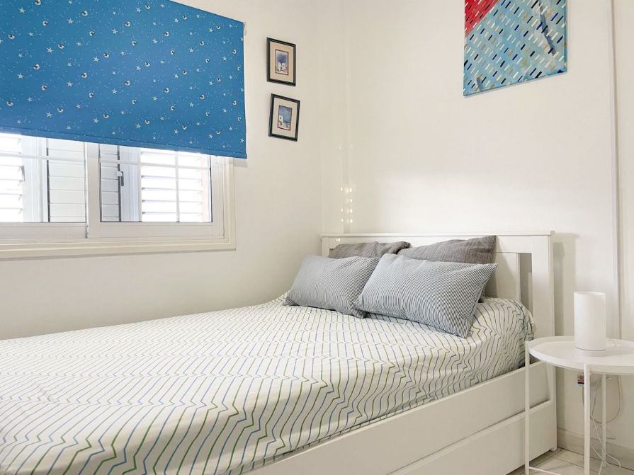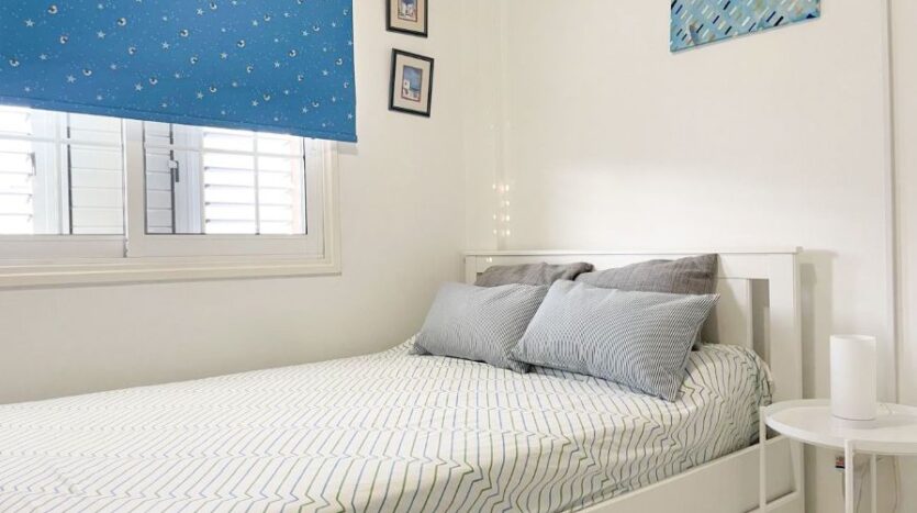 Both bedrooms are thoughtfully designed, offering cozy yet spacious retreats with ample storage. A well-appointed family bathroom serves the apartment, featuring modern fixtures and a fresh, clean aesthetic.
