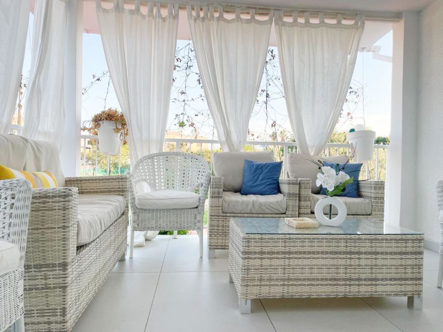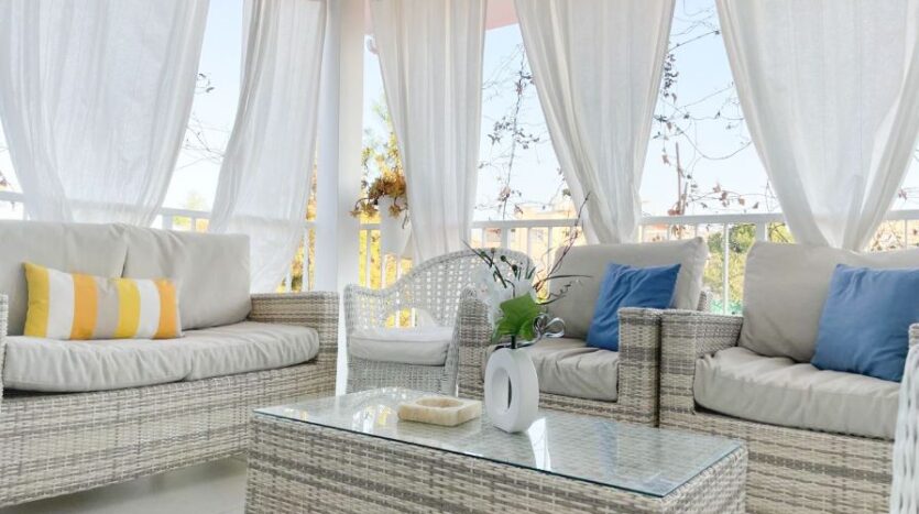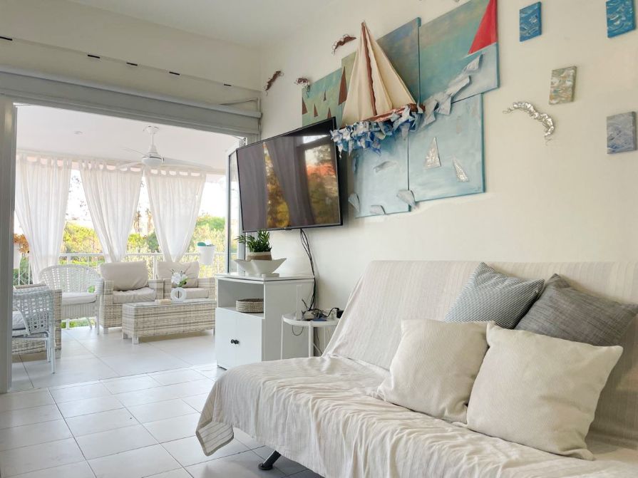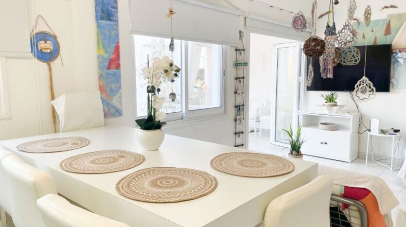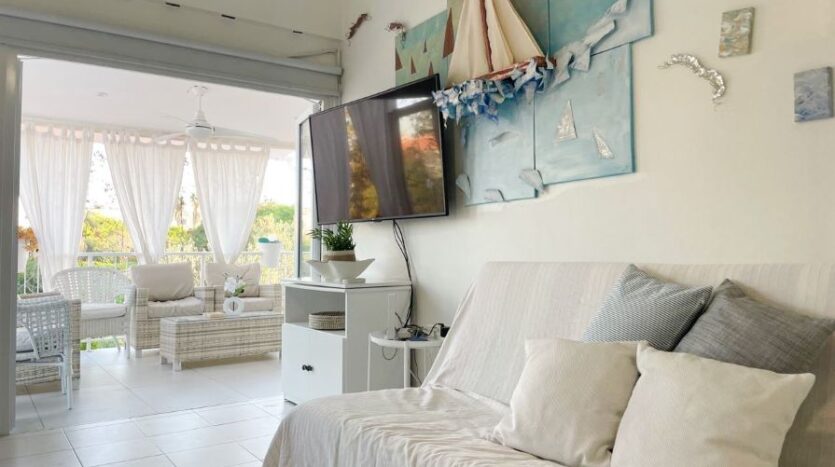 One of the highlights of this home is the covered veranda, providing an ideal outdoor space to unwind or enjoy al-fresco dining. Additionally, a designated outdoor seating area enhances the apartment’s appeal- perfect for soaking in the Mediterranean atmosphere. Private parking ensures convenience and security, adding to the overall practicality of this beautiful home.