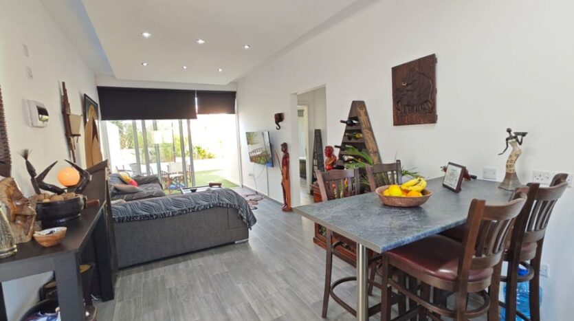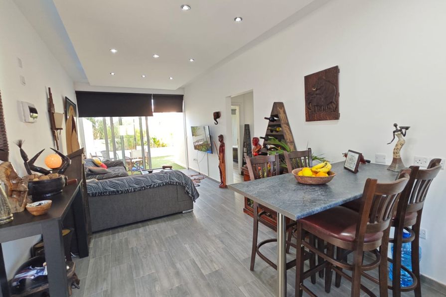 This beautifully renovated ground-floor apartment with a private garden is part of a peaceful, well-maintained complex and enjoys a prime location. It’s just a short stroll to local tavernas, shops and essential amenities and only a few-minutes’ drive to the stunning beaches of Kapparis and the new Paralimni Marina.