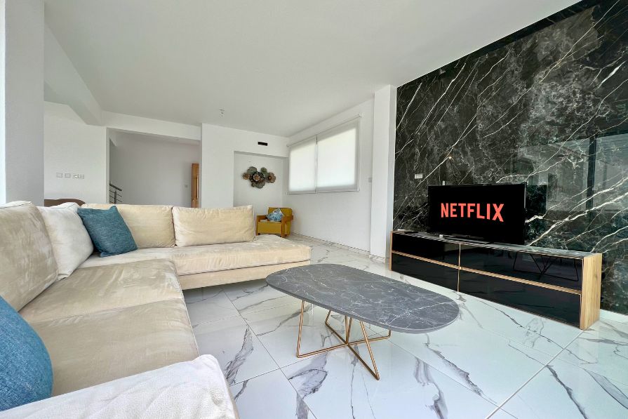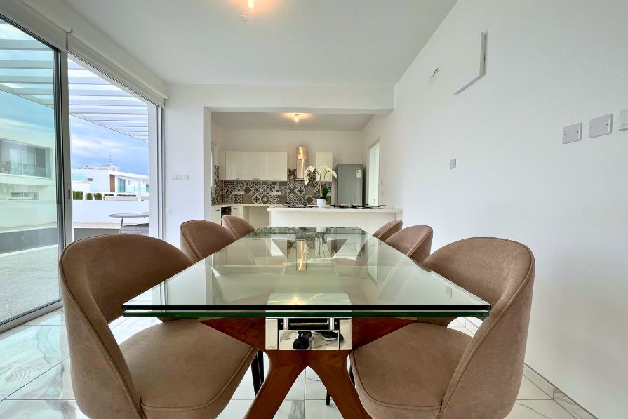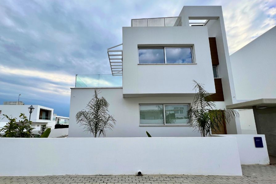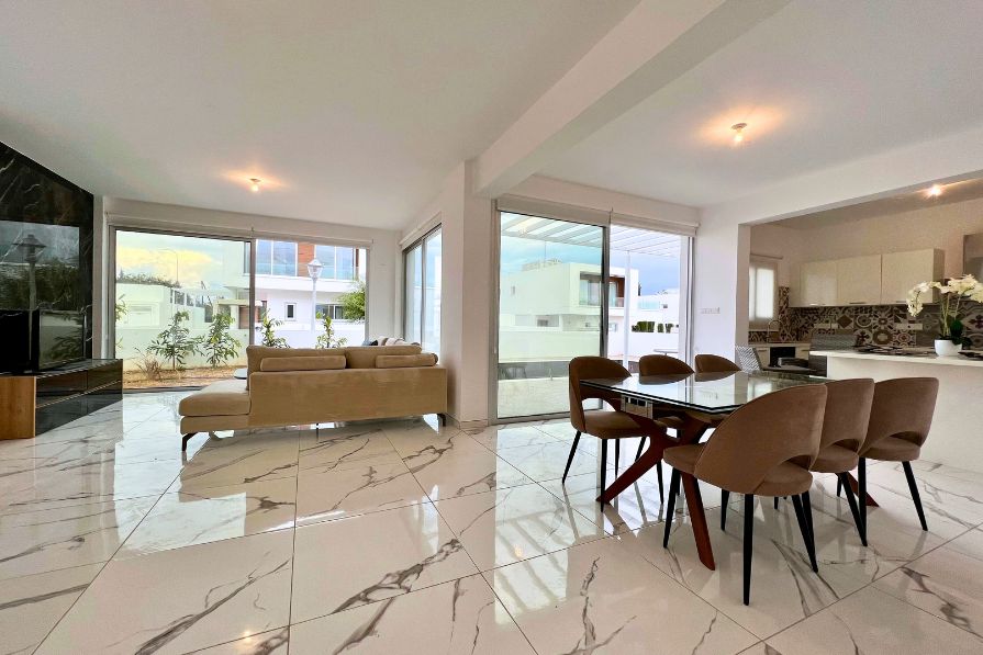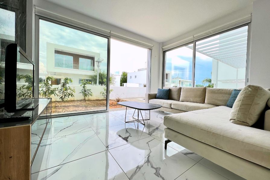 Set in an elevated position, 104m above sea level, this fantastic 3-bedroom detached luxury villa overlooks Ayia Napa and the glistening Mediterranean coastline. Adjacent to a large green area with unobstructed views of Ayia Napa, yet just a ten-minute walk to all amenities and a short drive to a choice of blue flag beaches, this villa offers the perfect blend of tranquility, convenience and comfort.