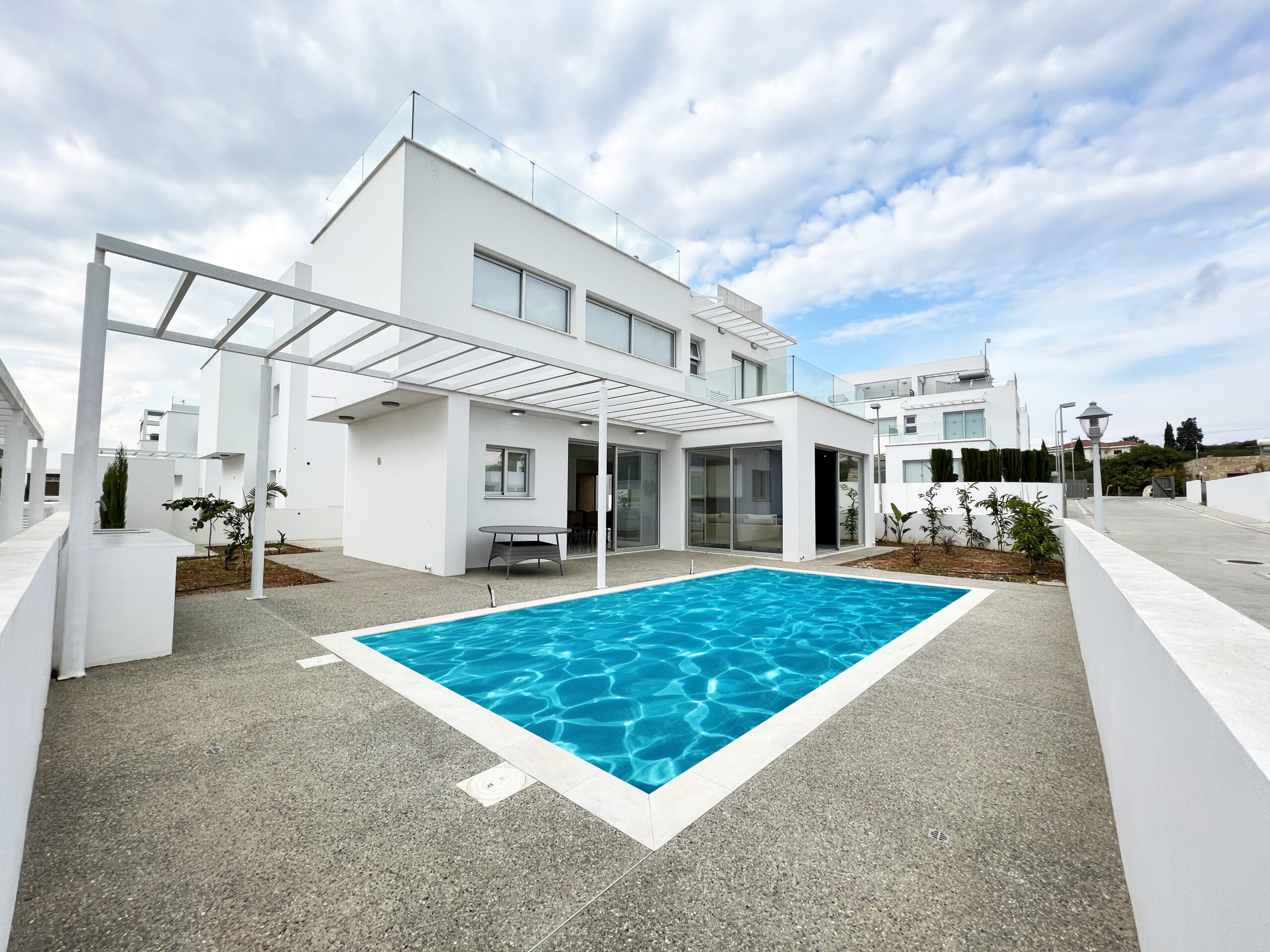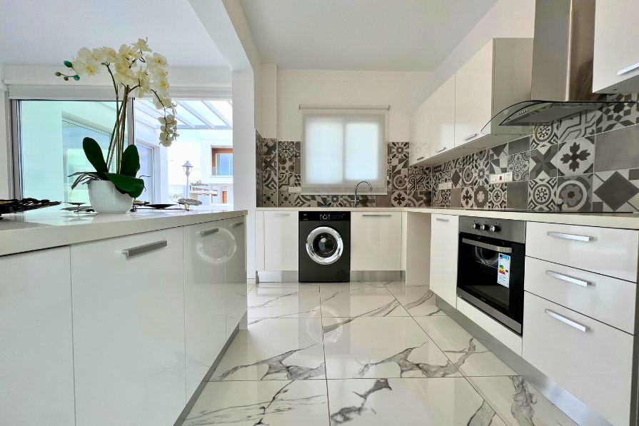 Outdoor living has most definitely been considered in the design of this villa, with a private swimming pool, garden and plenty of space to relax and enjoy either sunshine or shade with some al fresco dining. The large roof terrace is a wonderful feature of the property, offering even more space to enjoy the beautiful Cyprus sunshine. With panoramic views and sunsets that promise to take your breath away, the roof terrace is a must for impressing your loved ones.