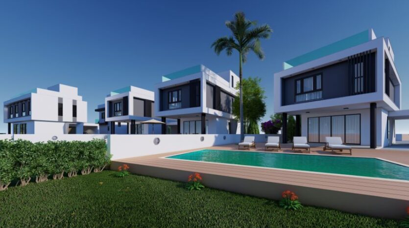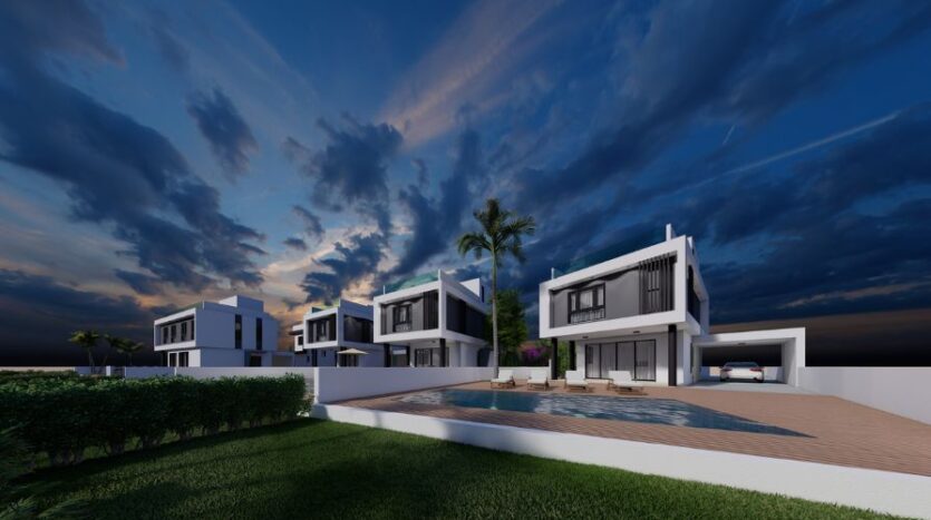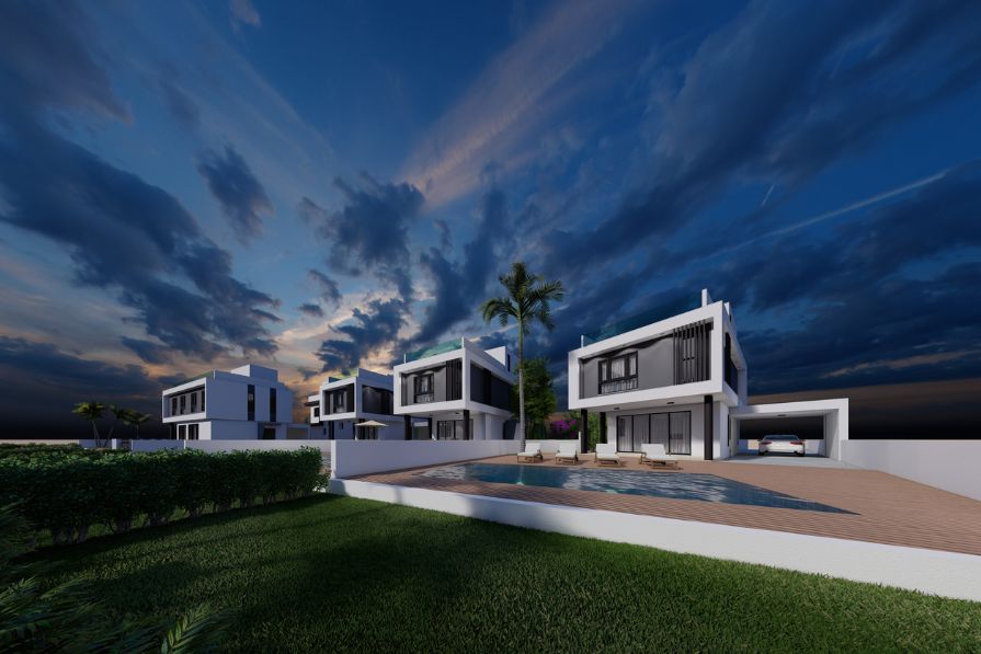 Brand-new four-bedroom detached villa with a private swimming pool and roof garden boasting panoramic sea views, perfectly located in Kapparis, just 100m from the beach! This impressive villa, set on a large plot and attached to a green area, is only a few minutes’ walk to the many shops, bars, restaurants and more in all-year-round Kapparis.