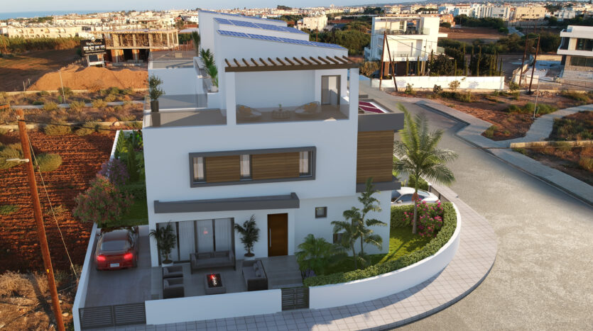 The outdoor space has been created with Cyprus living in mind. Relax in your private garden and soak up the sunshine or take respite from the sun under the elevated covered patio providing the perfect spot to relax in both sunshine and shade. The highlight of this property is the private roof garden with breathtaking sea views – an excellent place to entertain and impress your loved ones.