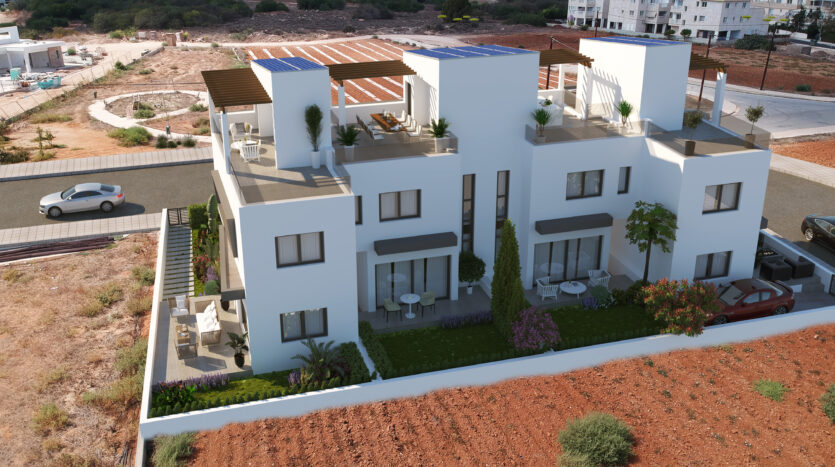 Contemporary two-bedroom maisonette set on an exclusive development of just four houses in Kapparis with a large roof garden boasting stunning sea views. Just a short walk from a wide range of amenities including shops, bars, restaurants, banks and more. It is also only a 7-minute walk to the beach and within easy reach of even more sandy beaches in Kapparis, Ayia Triada, Pernera and Protaras.