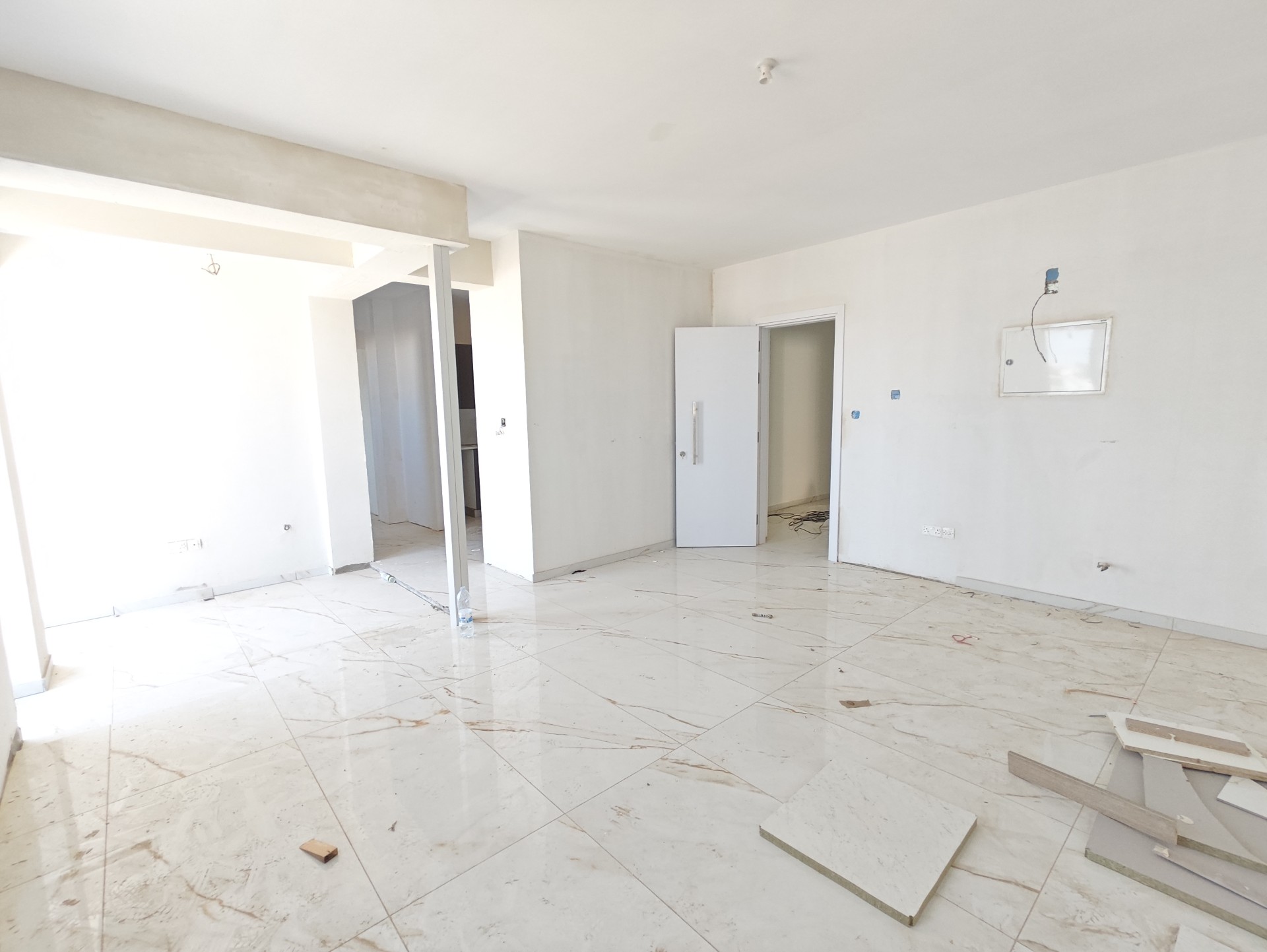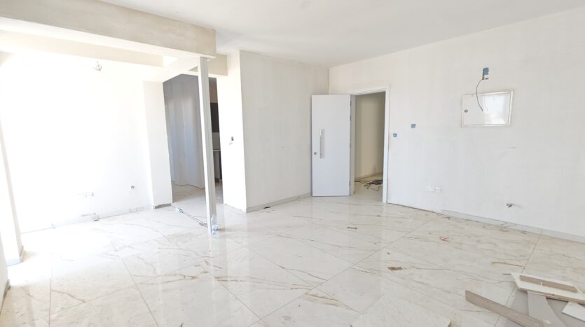 The apartment features an open-plan kitchen and living area, creating a spacious, versatile space that can be tailored to suit your style and needs. Natural light pours in through large windows, enhancing the bright and airy atmosphere, and the living room opens onto a covered veranda, ideal for relaxing outdoors.