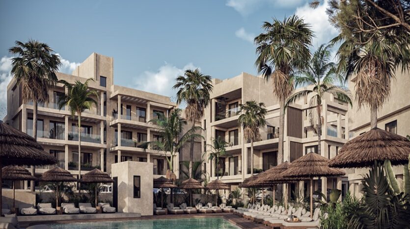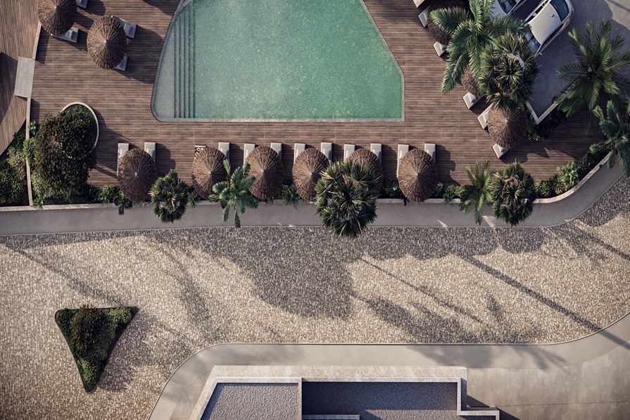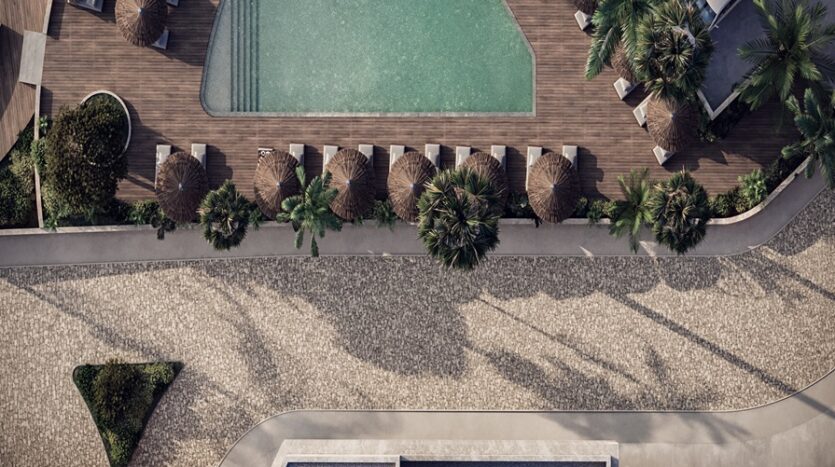 The private veranda is perfect for enjoying the stunning views, whether sipping a cold cocktail or dining al fresco as the sun sets. The communal swimming pool is the highlight of the development, providing an exotic and relaxing environment with expansive green areas that create an exclusive atmosphere for residents.