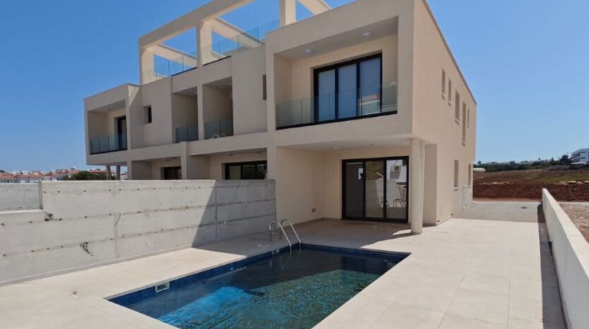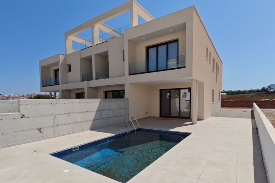 Wonderful new-build three-bedroom townhouse with a private pool in popular Kapparis, just a two-minute drive to the beautiful sandy beaches nearby. A short stroll will bring you to the main strip of Kapparis which boasts a plethora of fabulous shops, bars and restaurants which are open all year round.