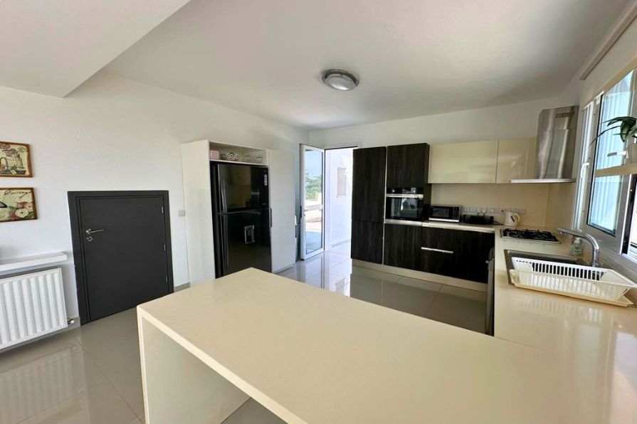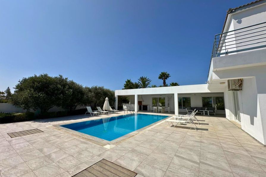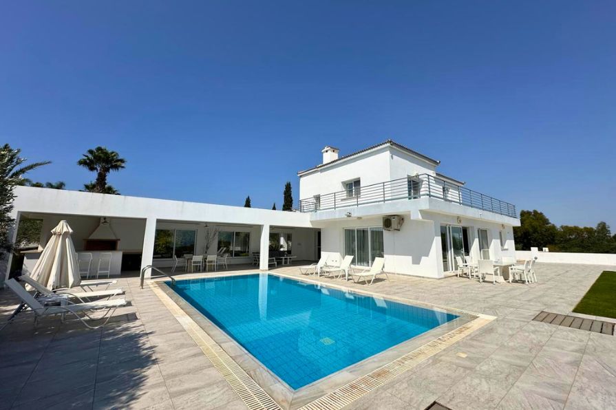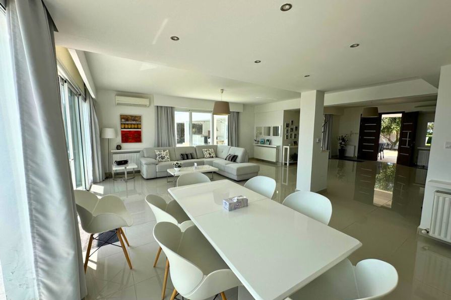 Nestled on a commanding elevated plot, this remarkable five-bedroom villa offers an exceptional blend of architectural elegance, contemporary comfort and expansive outdoor living — all framed by panoramic views of the Mediterranean Sea and surrounding landscape. Designed to maximize its privileged position, the home enjoys abundant natural light, a constant connection to the outdoors and a layout that effortlessly balances privacy and openness.